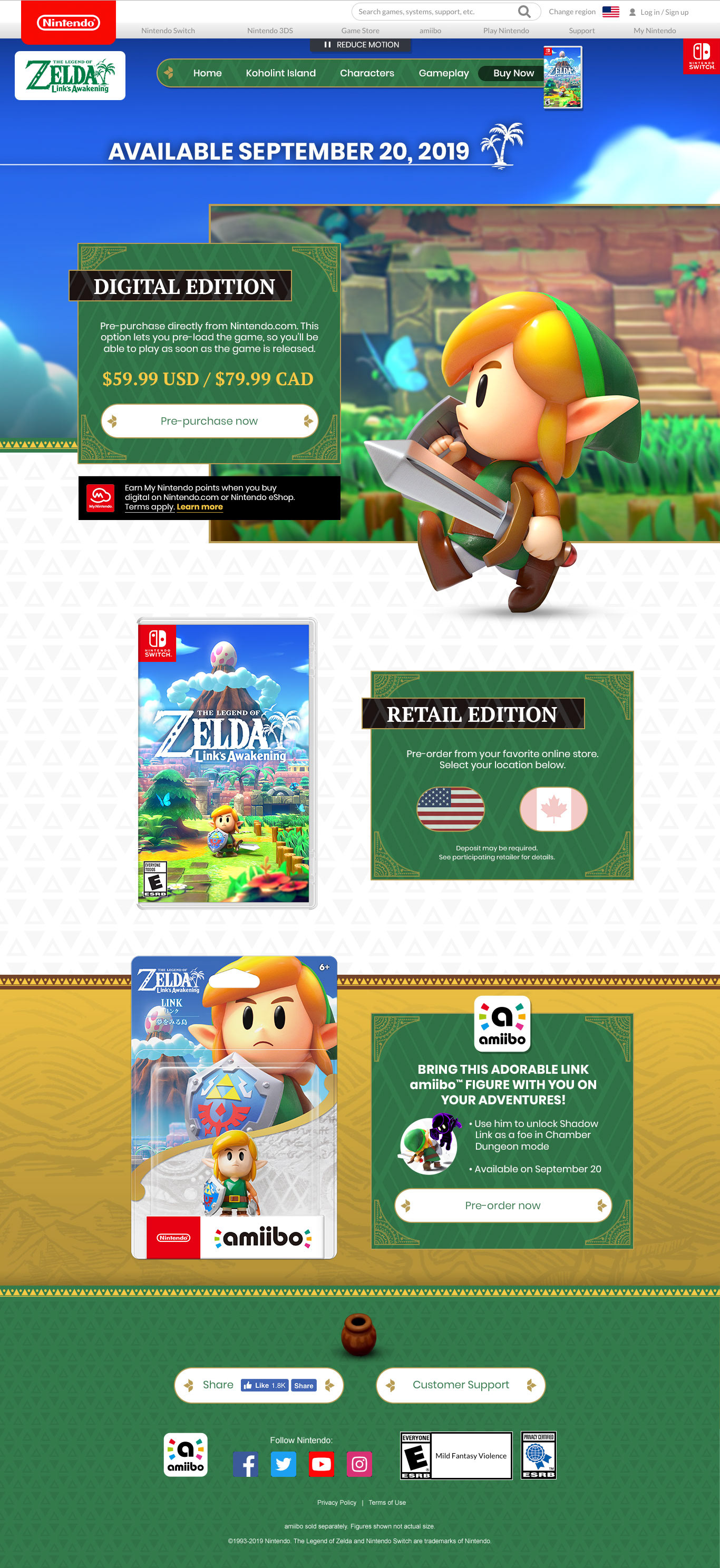 Concept, direction and design for this Nintendo consumer site for the release of one of it's marquee titles, which won numerous awards