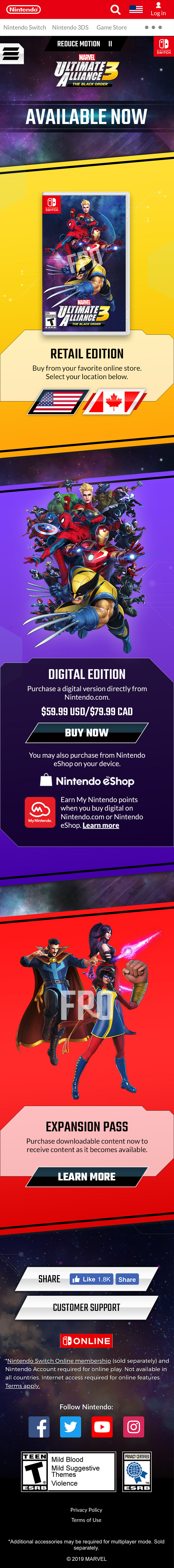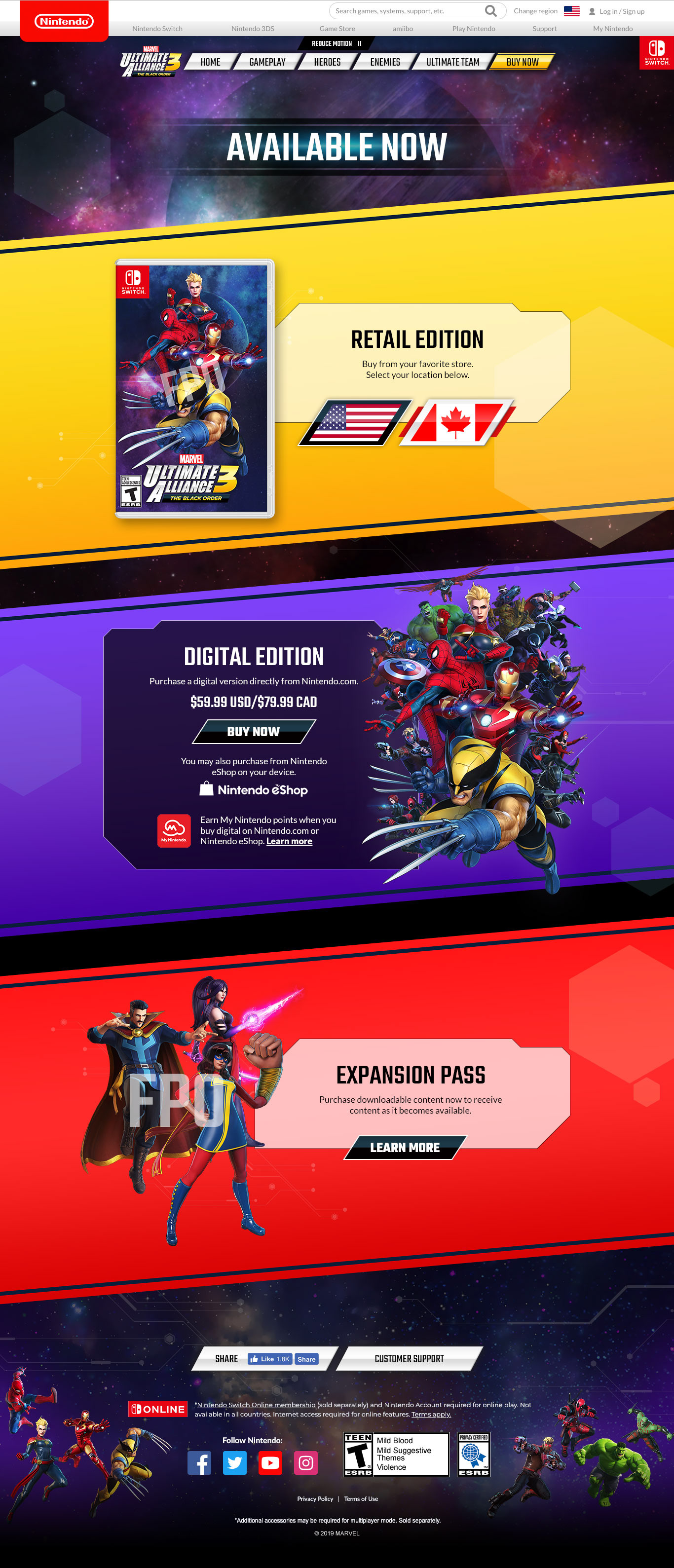 Nintendo | Marvel: Ultimate Alliance 3 site